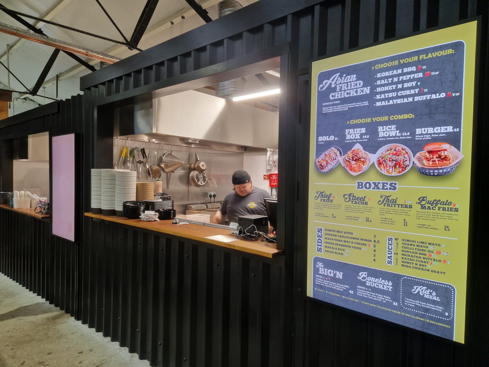 Service: Eat in with your neighbours or order online for collection and has NU BAR for drinks.